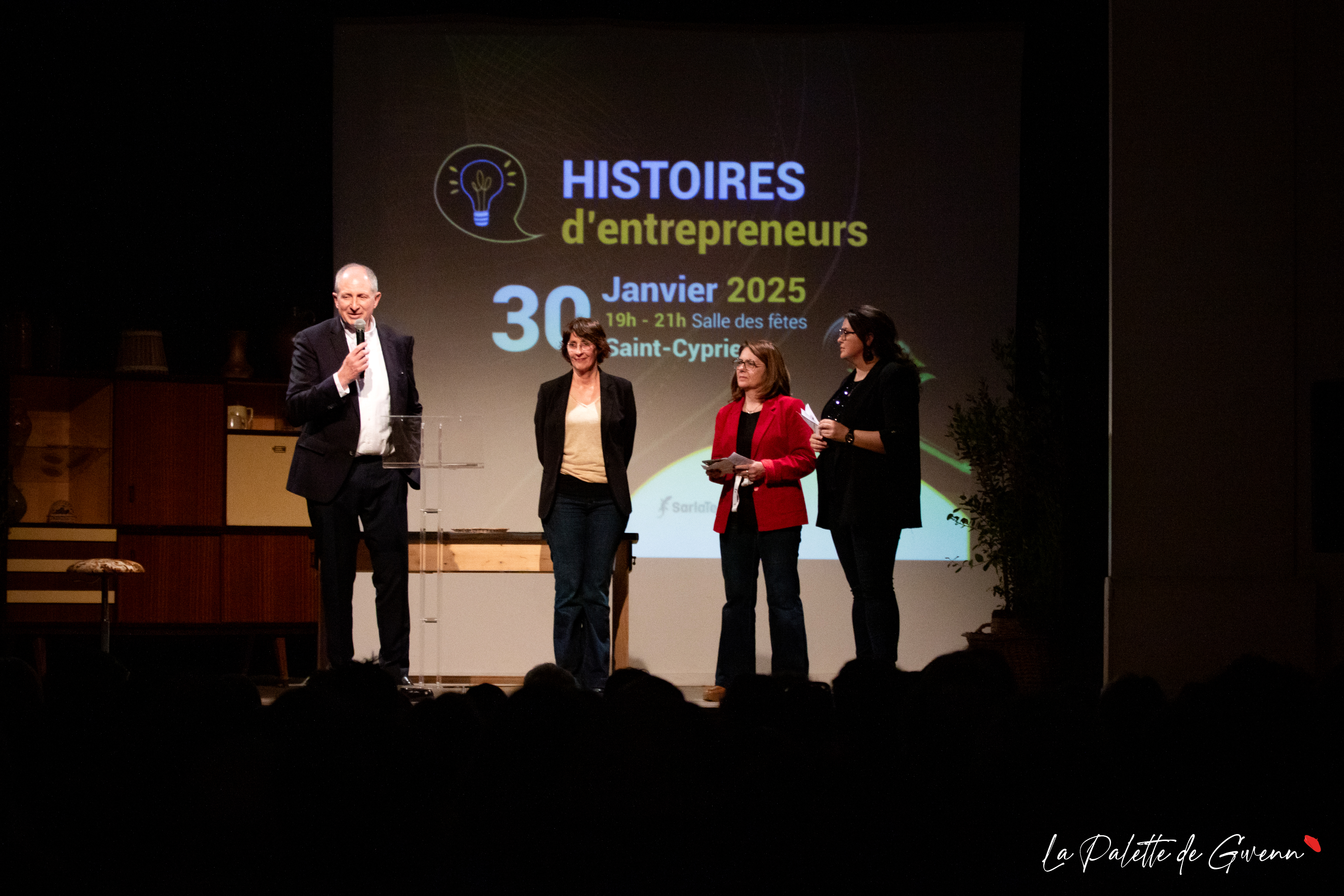 Galerie photo pour la soirée » Histoires d’entrepreneurs » co-organisée par La Communauté de Commune Vallée Dordogne Forêt Bessède, La Frenchtech Périgord et Sarlatech, soirée à Saint-Cyprien – shooting le 30 janvier 2025 © La Palette de Gwenn’ – 2025 – Utilisation sans accord préalable et modifications interdites