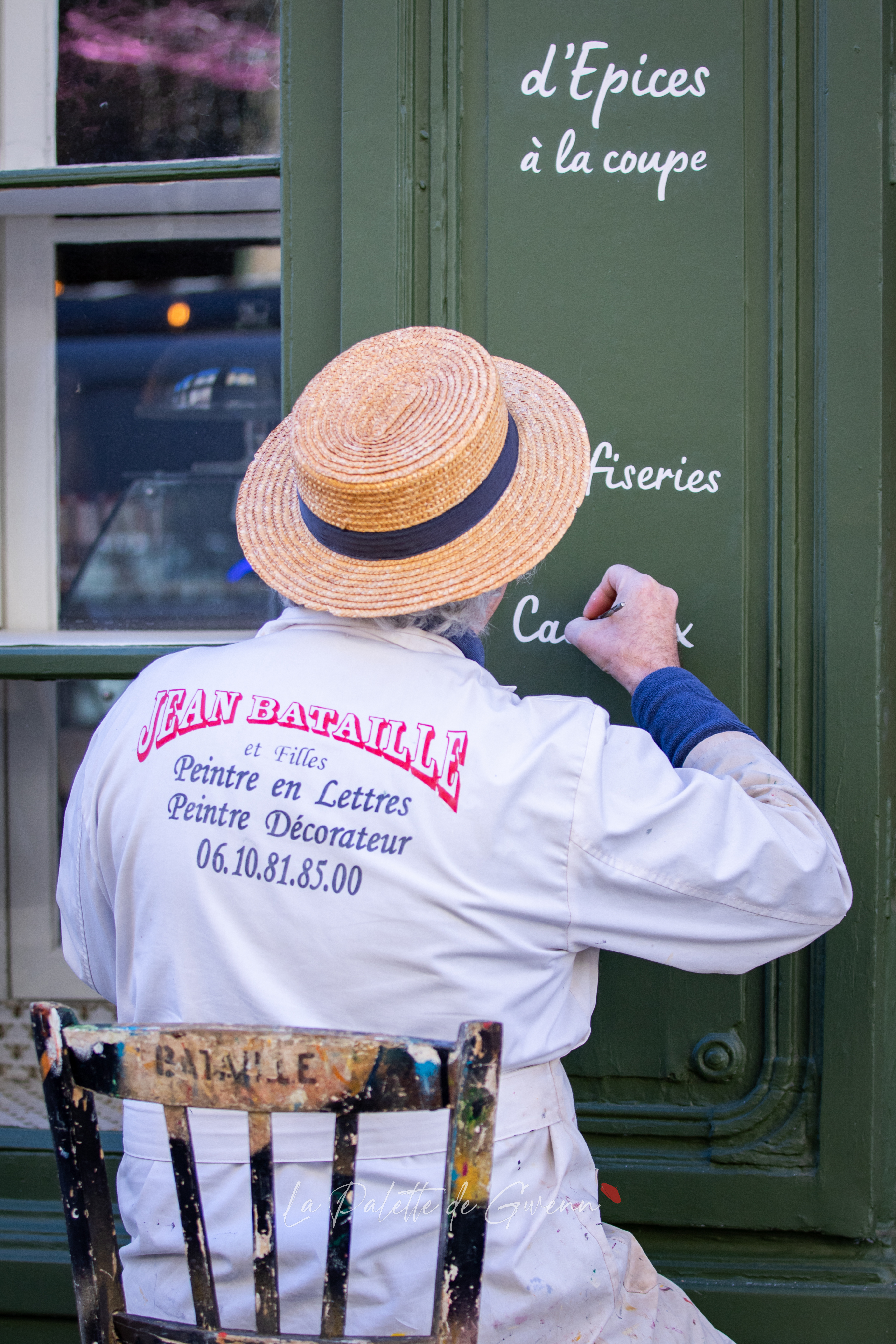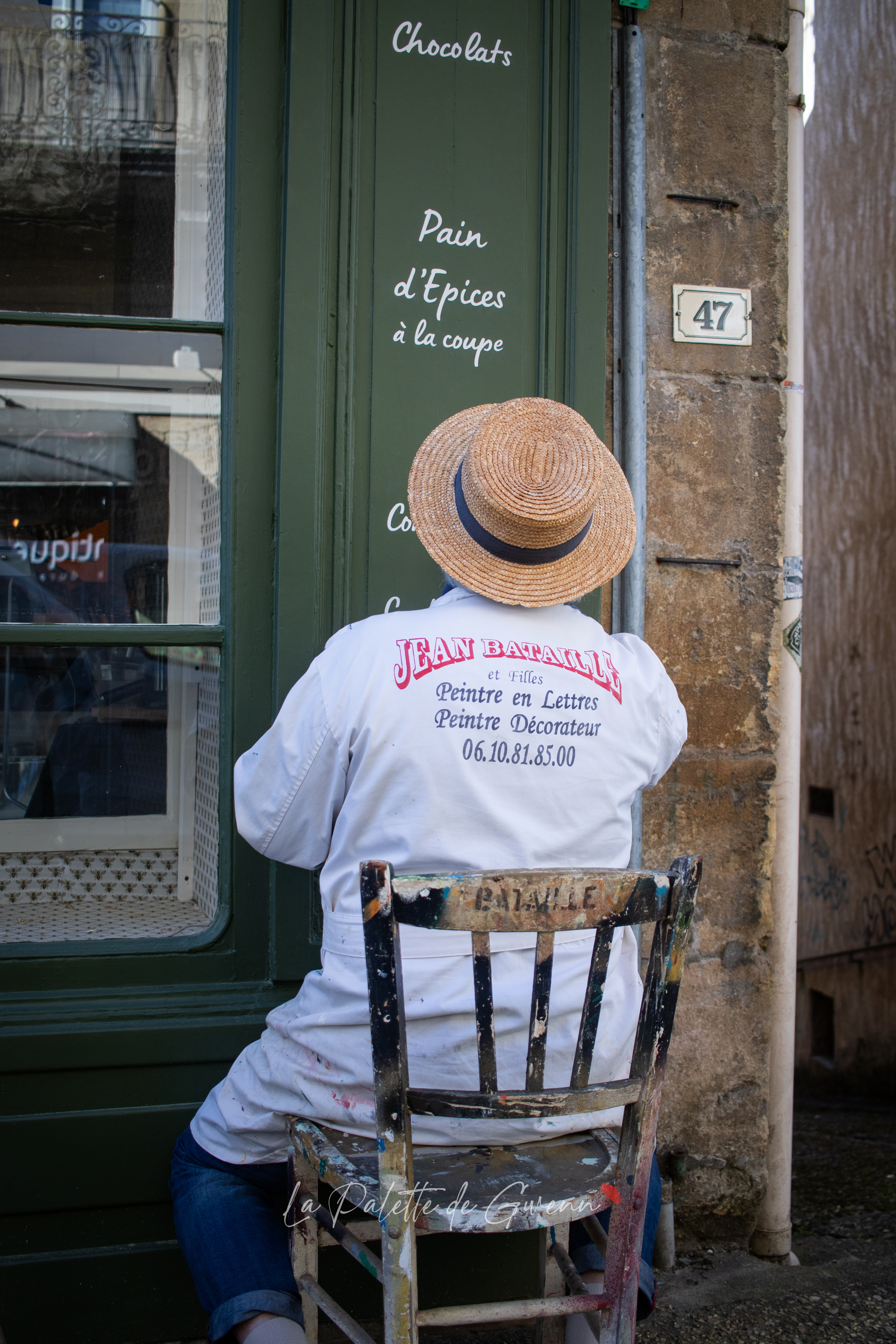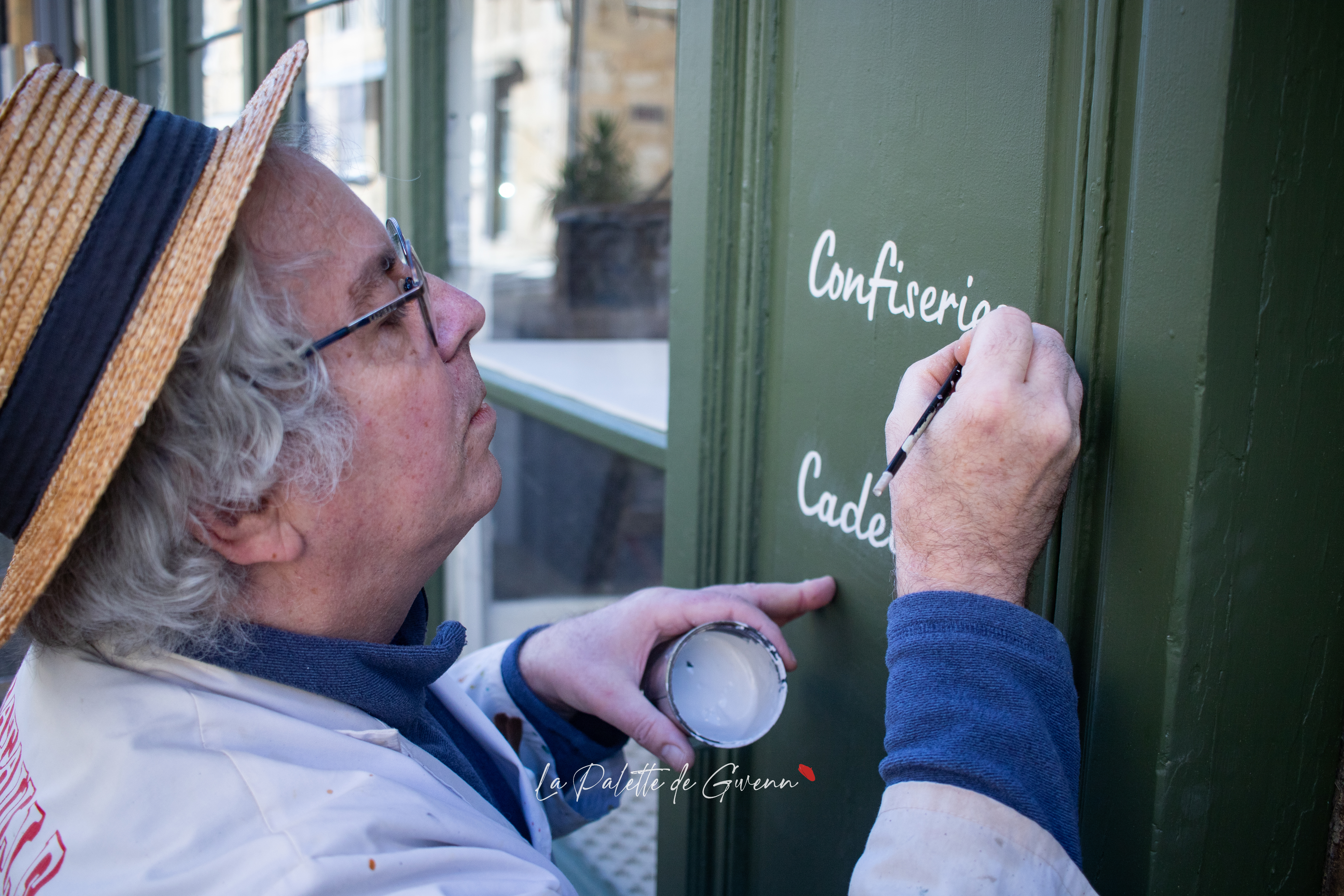 Galerie photo pour la mise en valeur d’un savoir-faire et pour une sauvegarde visuelle d’un patrimoine artisanal de plus de 7 générations de peintre en lettres. Photo-reportage de Jean Bataille, peintre de lettres, sur la devanture de magasin Périgord et Chocolats à Saint-Cyprien !